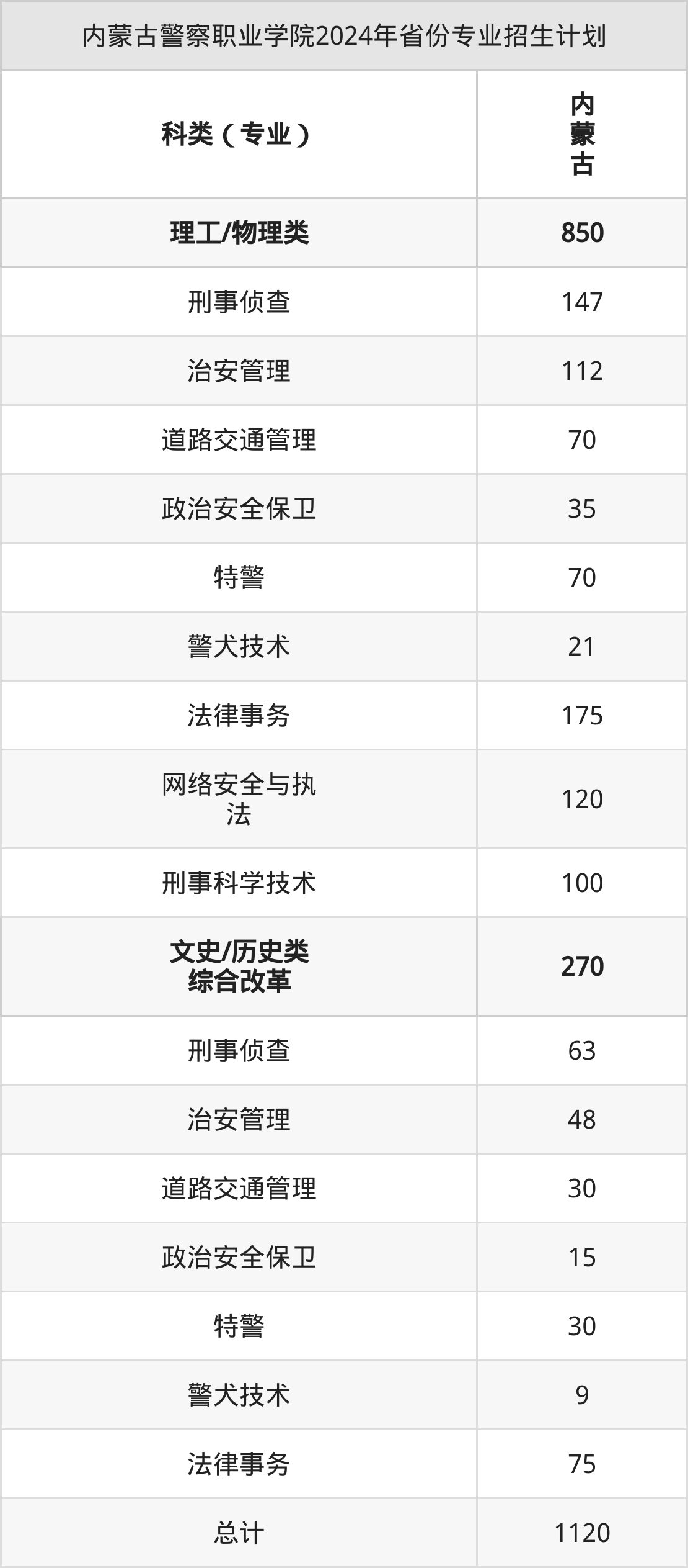 内蒙古警校2025年招生计划